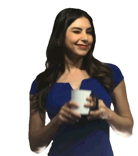 Ana Mafud from Las Noticias Despertamos Juntos, smiling and holding a mug. Perfect for morning greetings or coffee breaks.