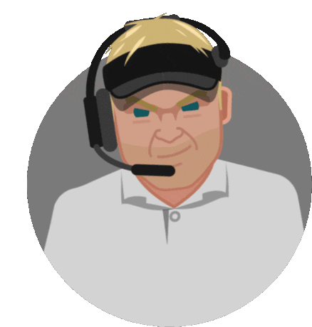 Animated sticker of Jon Gruden, former coach of the Las Vegas Raiders, with an intense expression.