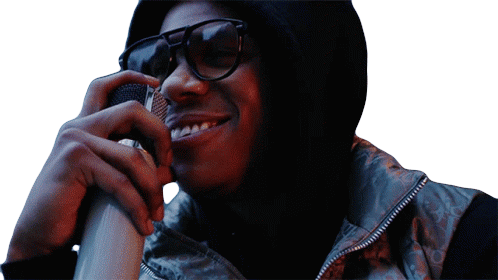 A Boogie Wit Da Hoodie laughing hilariously with a wide smile, wearing glasses and a hoodie, holding a spray can.