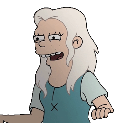 Animated sticker of Bean from Disenchantment, voiced by Abbi Jacobson, laughing heartily with eyes closed.