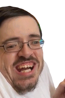Ricky Berwick laughing heartily with his mouth open, showcasing his signature expressive and joyful reaction.
