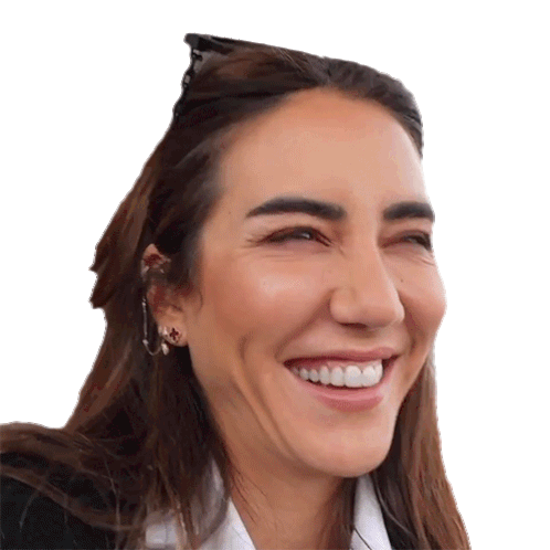 Tamara Kalinic laughs with joy, eyes closed, expressing pure happiness and amusement.