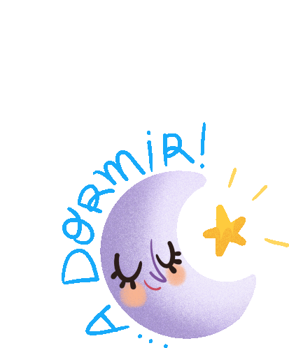 A cute purple moon with closed eyes and a sparkling star, accompanied by the Spanish phrase 'A Dormir!' for bedtime.