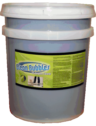 Animated sticker showcasing a variety of Clean Bubbles cleaning products: all-purpose, laundry, dish soap, and degreaser.