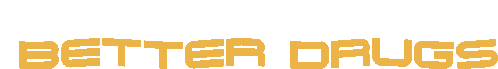 Laura Dreyfuss's 'Better Drugs' logo, featuring the phrase in bold yellow letters on a white background.