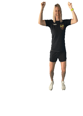 Lauren Penny, a field hockey player, jumps in celebration with arms raised, showing excitement for her Hockey Performance Academy.