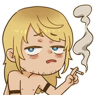 a cartoon of a shirtless man smoking a cigarette with smoke coming out of his hand .