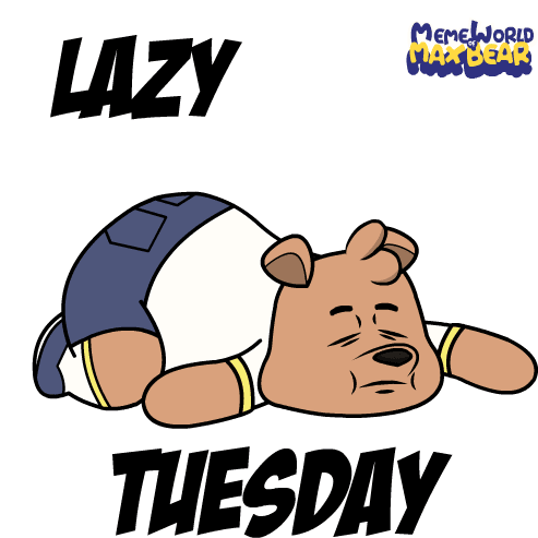 Max Bear from Memeworld is feeling lazy on Tuesday, lying down with a tired expression.