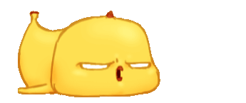 A cute, yellow, blob-like cartoon chick lies down, looking tired and annoyed, wiggling slightly.