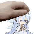 Animated pixel art sticker from LBC Lovebrush Chronicles, showing a hand gently petting a character's head.