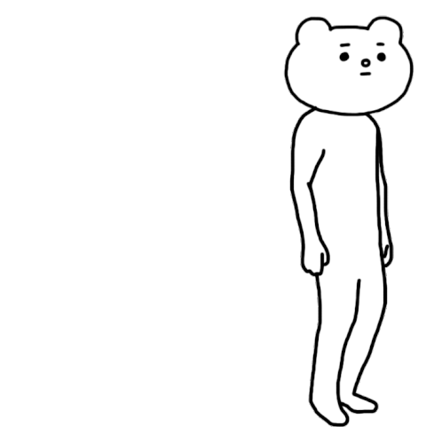 Betakkuma, the quirky bear-like character, strikes a leaning and bending pose, looking curious. Perfect for expressing a thoughtful or questioning mood.