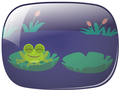 A cheerful green frog happily leaps and jumps between lily pads in a serene pond, enjoying its aquatic environment.