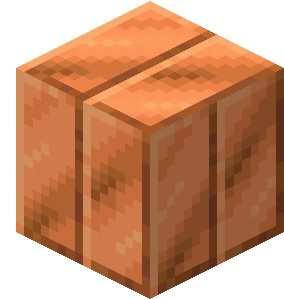 Leavewe Copper Block from Minecraft gradually oxidizes, changing from orange to green over time.