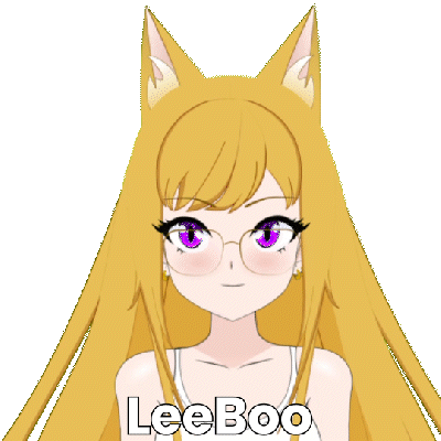 Leeboo, also known as Leemboo, an anime fox girl with long blonde hair and glasses, animated while talking.