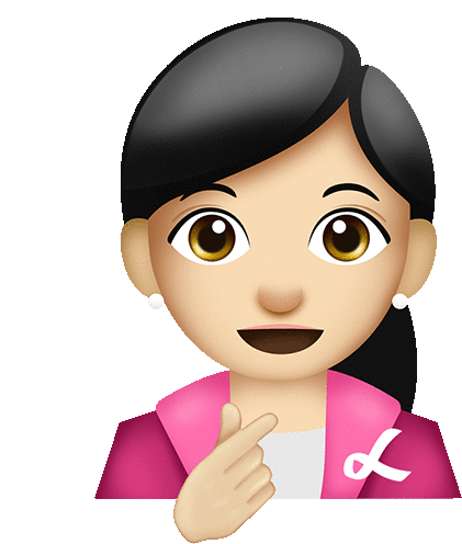 an emoji of a woman wearing a pink jacket with a breast cancer ribbon