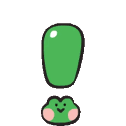 Lenini Minini sticker featuring a wiggling green exclamation mark with a cute frog face at its base.