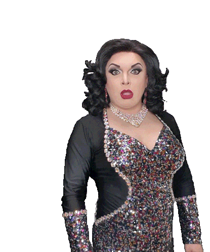 a drag queen wearing a sequined dress and a necklace with her mouth open