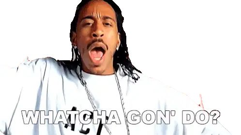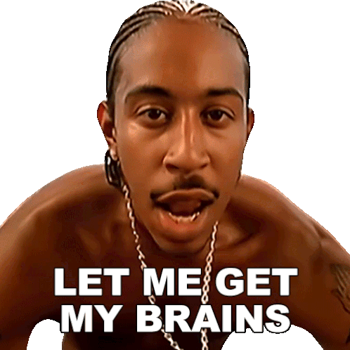 Ludacris, shirtless and wearing a chain, says 'LET ME GET MY BRAINS' with an intense, expressive look.