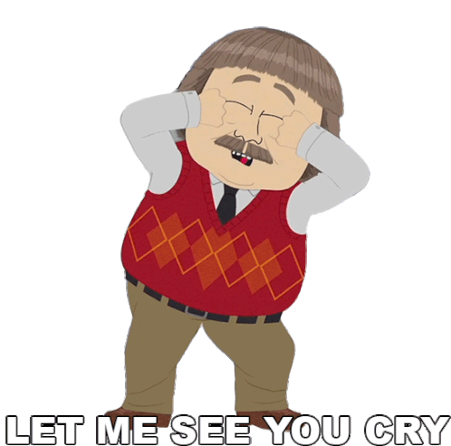 Bucky Bailey from South Park covers his eyes, demanding 'Let Me See You Cry' in this animated sticker.