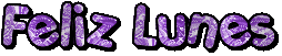 Animated purple text displaying 'Feliz Lunes' (Happy Monday) with a cheerful, shimmering effect.