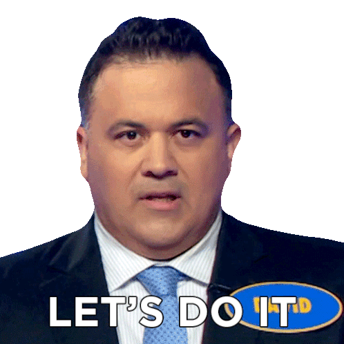 David, the host of Family Feud Canada, enthusiastically says 'Let's Do It' with a determined expression.