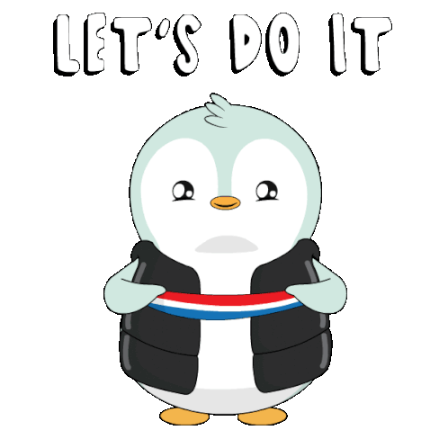A determined Pudgy Penguin wearing a red, white, and blue headband with the motivational text 'LET'S DO IT'.