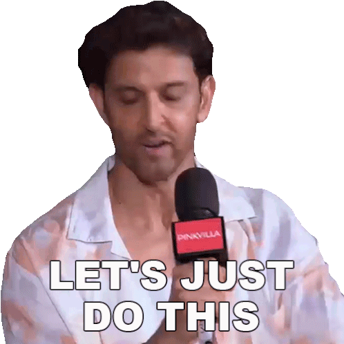 Hrithik Roshan, the Bollywood star, holds a Pinkvilla microphone, encouraging action with "Let's Just Do This."