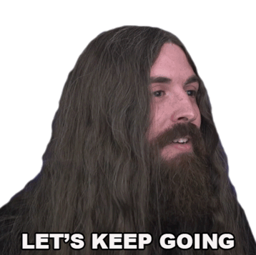 Samus Paulicelli, with long hair and beard, encourages persistence with the phrase 'Let's Keep Going'.