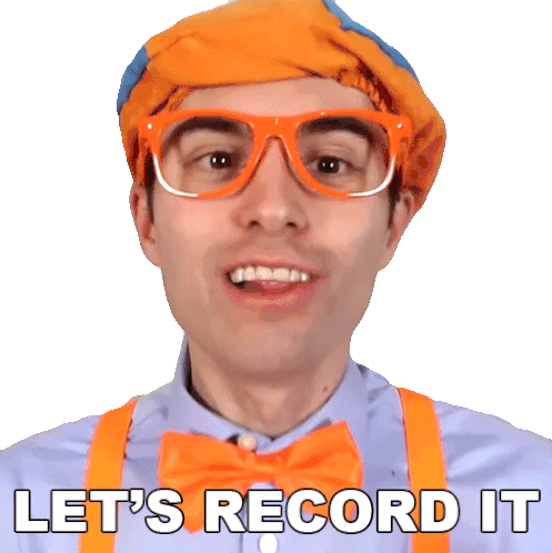Blippi, the energetic children's entertainer, encourages viewers with a cheerful 'Let's Record It!' in this fun animated sticker.