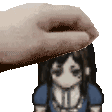 Animated pixel art sticker featuring Levi Jordan from the game Fear & Hunger, depicting a hand holding a doll.