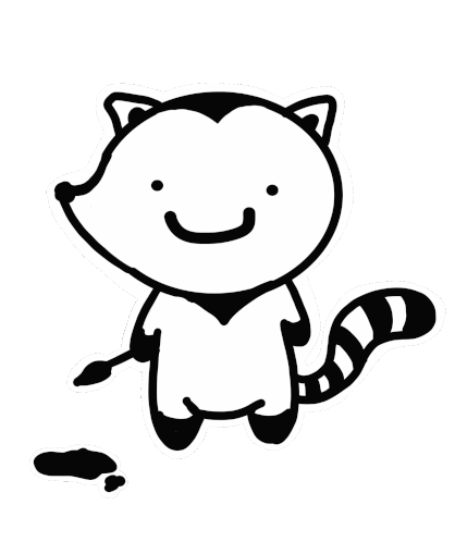 a black and white drawing of a raccoon with a brush in its hand