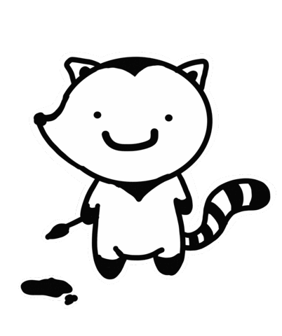 a black and white drawing of a raccoon with a brush in its paws .