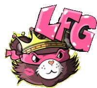 Enox, the cartoon bear/cat, wears a crown and mask, with 'LFG' text. Features a heart nose and kiss mark.