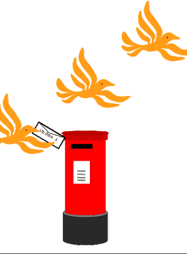 A yellow bird, representing Lib Dem Lady Libby, posts a 'Lib Dem X' letter into a red British post box for a postal vote.