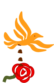 Lib Dem Lady Libby's yellow bird drops 'bird crap' onto a vibrant red rose, a symbolic and humorous political sticker.