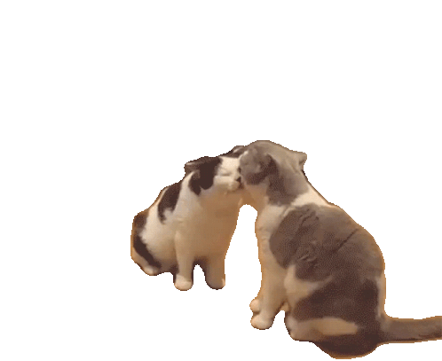 Two adorable cats, one black and white and one grey and white, affectionately lick each other's heads.