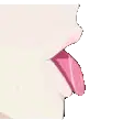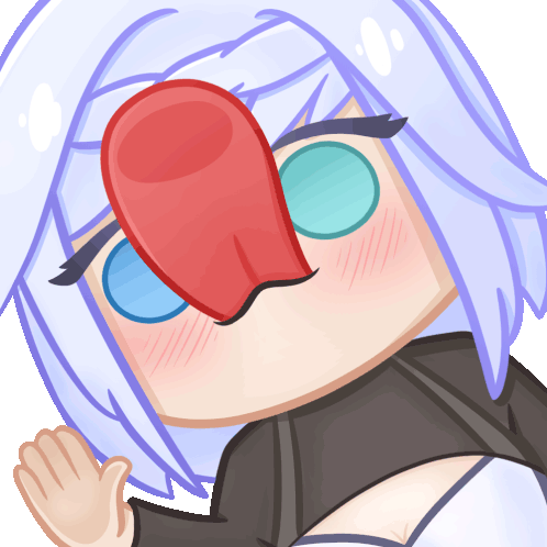 Framp, the cute cartoon character with a red nose and blue eyes, playfully licks with its pink tongue.