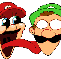 Pixel art sticker featuring Mario and Luigi with their tongues sticking out, animated in a licking motion.