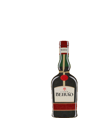 A bottle of Licor Beirão stands as red hearts float around it, symbolizing love for the Portuguese liqueur.