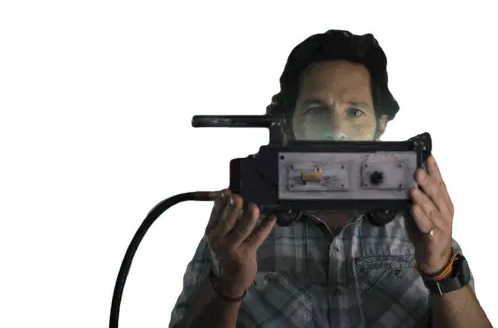 The adorable Mini Puft from Ghostbusters holds a clapperboard ready for a fun movie night.
