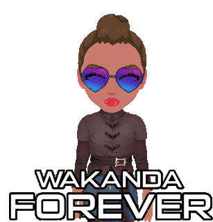 Lignon Cynthia, an animated character, performs the Wakanda Forever salute with heart sunglasses and 'WAKANDA FOREVER' text.