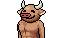 A pixel art Lihkg cow character with horns and muscular arms flexes, showing strength and humor.