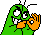 A pixel art green monster from Lihkg makes a 'diu' gesture with its hand, conveying a playful and naughty mood.