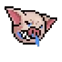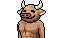 An animated pixel art sticker of Lihkg's 連牛 character, a horned creature wearing glasses and coolly smoking a cigar.