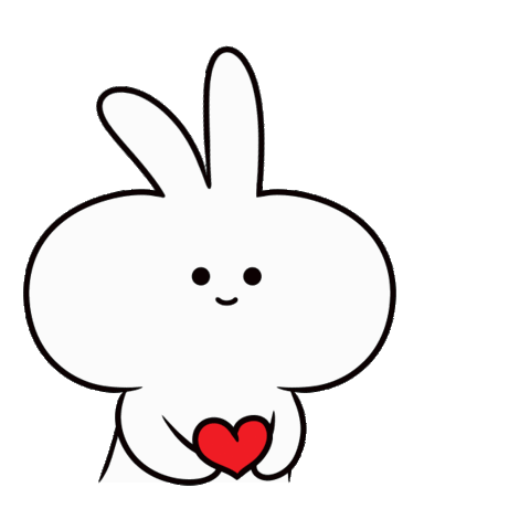 Adorable animated sticker featuring a cute white rabbit holding a pulsing red heart, perfect for expressing love or admiration.