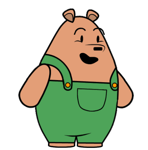 A cheerful cartoon bear in green overalls gives an enthusiastic thumbs up, winking and exclaiming "LIKE!" with sparkling stars.