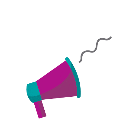 A vibrant purple and teal megaphone for Lilia Marketing, signaling an announcement or communication.