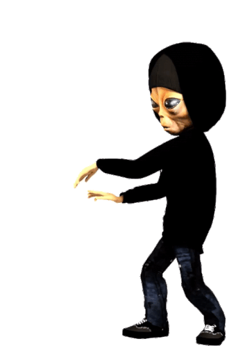Lilmayo, the iconic Ayylmao alien meme, in an animated sticker, striking a pose in a black hoodie and jeans.