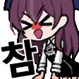Lilpa, the blue-haired Vtuber, unleashes a powerful yellow-orange beam from her mouth in this cute animated sticker.