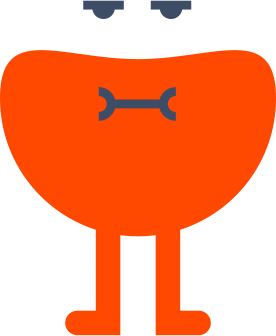 An orange, bean-shaped mascot character with blue eyes and wrench-like arms, representing Lingkaranco.